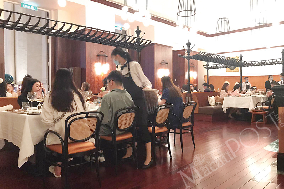 This photo shows guests dinning at Aux Beaux Art at Grande Praça of MGM Macau in Nape on Friday. Photo: Maria Cheang Ut Meng