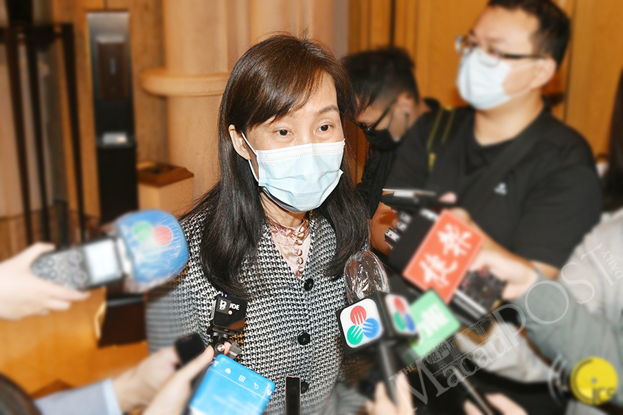Secretary for Social Affairs and Culture Elsie Ao Ieong U speaks to reporters at The Plaza Restaurant in Zape yesterday. Photo: GCS