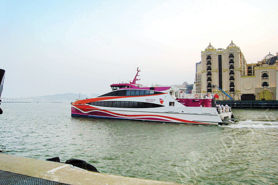 This undated handout photo provided by the Marine and Water Bureau (DSAMA) yesterday shows a ferry departing from Macau .