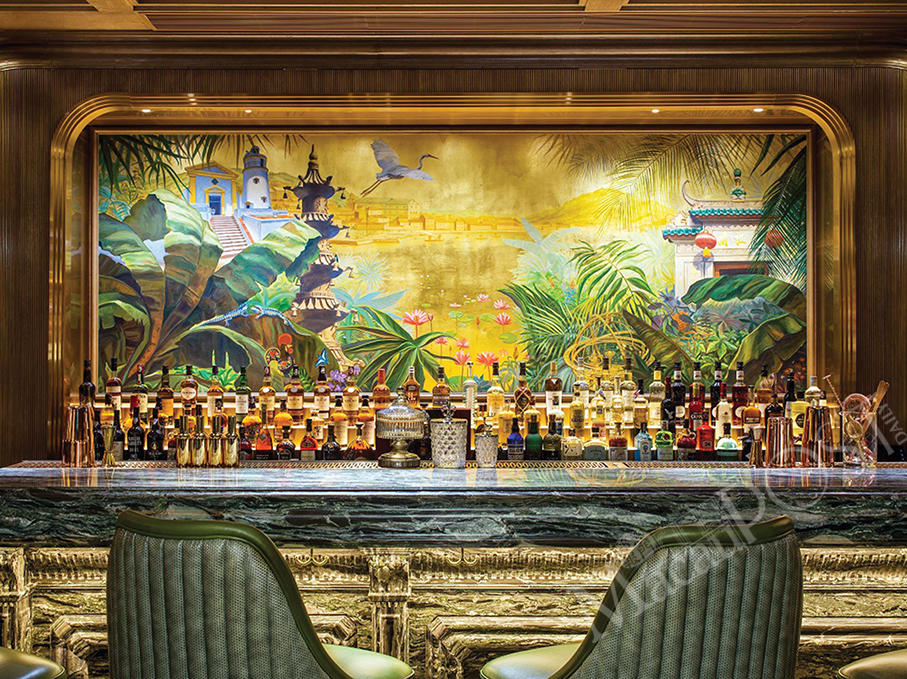This undated handout photo provided by The St. Regis Macao shows the St Regis Bar and its collection of alcoholic beverages.