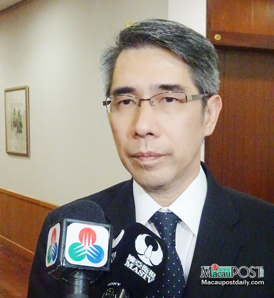 Housing Bureau (IH) Director Arnaldo Ernesto dos Santos speaks to reporters yesterday in the legislative chamber. Photo: Tony Wong