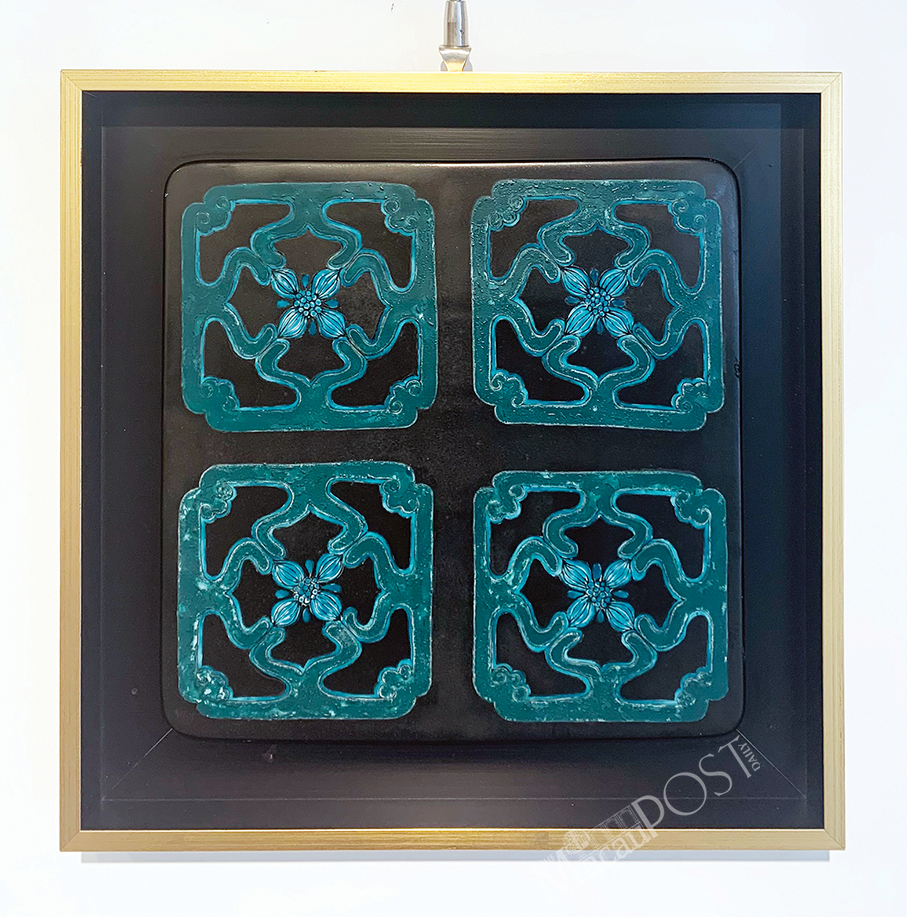 Frota said when she arrived in Macau she visited local places such as Lou Lim Ieoc Garden and the Mandarin House. She saw “ancient windows” which impressed her and led her to think about people in bygone times who enjoyed looking through the windows to see into the garden. Frota said she wanted to translate the ideas that she experienced in Macau and other Asian countries by displaying a painting named “Ancient Green Garden” at the entrance of the gallery, symbolising the start of her Asian journey.