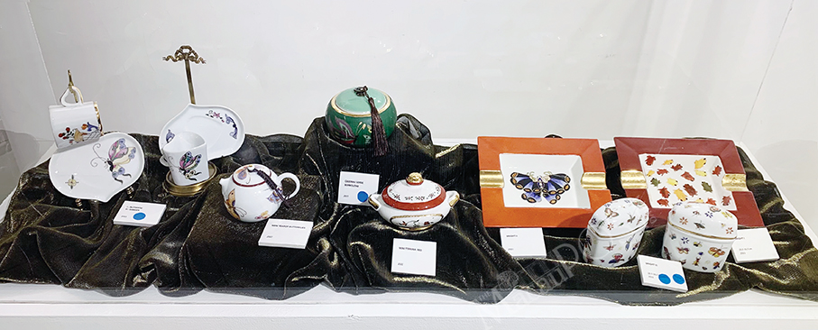 The exhibition showcases 53 pieces of hand-painted porcelain by Frota such as plates, cups and teapots, small jewellery boxes, ashtrays and decorated platters, with shapes and shades revealing the artist’s multicultural influence, according to an article by the gallery.