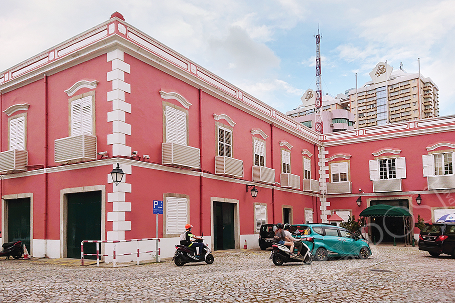 Cars and scooters drive past the listed S. Francisco Barracks yesterday. The Macau Public Security Forces are headquartered at Macau’s erstwhile Portuguese garrison barracks. Photo: Tony Wong
