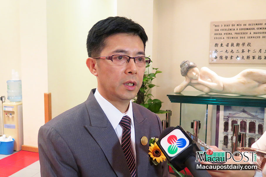 Macau Chinese Pharmacy and Medicine Association President Paulo do Lago Comandante speaks to reporters on the sidelines of a seminar held by his group at the Health Bureau’s (SSM) headquarters on Guia Hill. Photo: Davis Ip