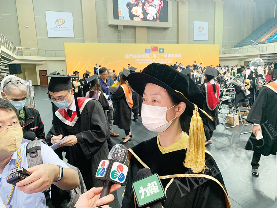 Around 80 percent of the Macau Institute for Tourism Studies’(IFTM) graduates from last year are working in tourism-related industries, IFTM President Fanny Vong Chuk Kwan told reporters on the sidelines of yesterday’s graduation ceremony at Tap Seac Multisports Pavilion.