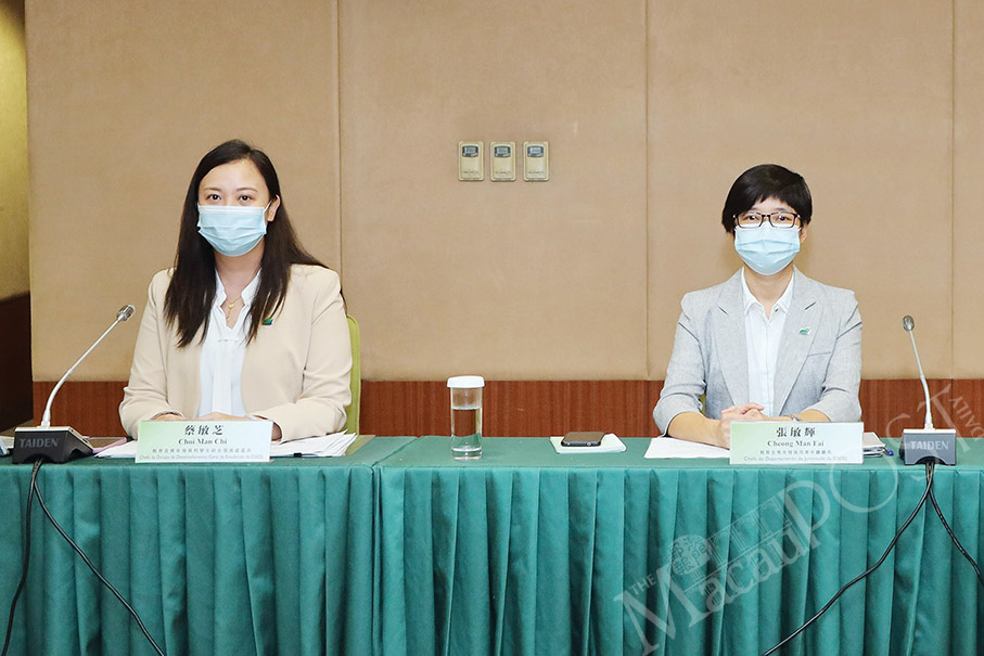 DSEDJ’s Comprehensive Development of Students Division Chief Choi Man Chi (left) and Youth Department Chief Cheong Man Fai pose before yesterday’s press conference at the bureau. Photo: DSEDJ