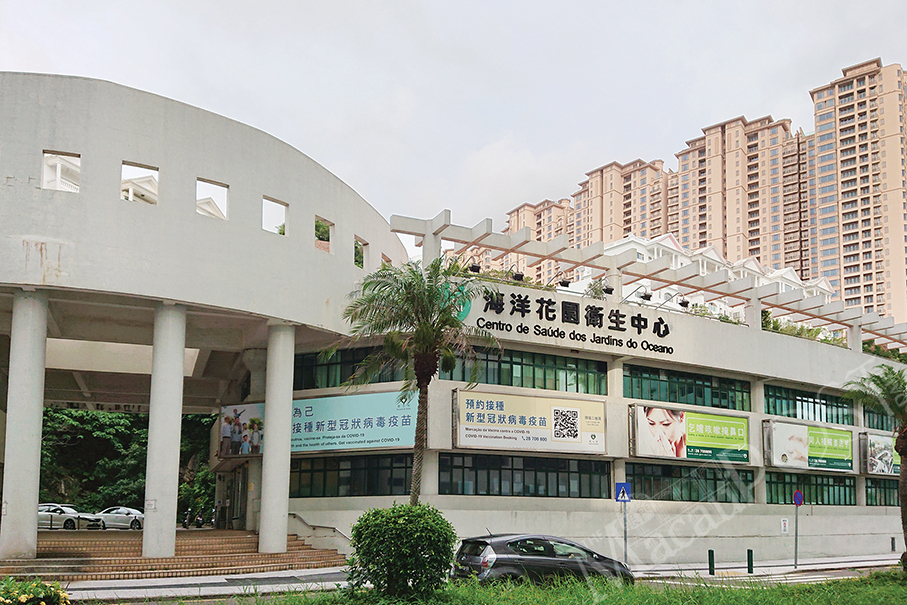 A car drives past the Ocean Gardens Health Centre yesterday, one of Macau’s three facilities for BioNTech inoculations. Photo: Tony Wong