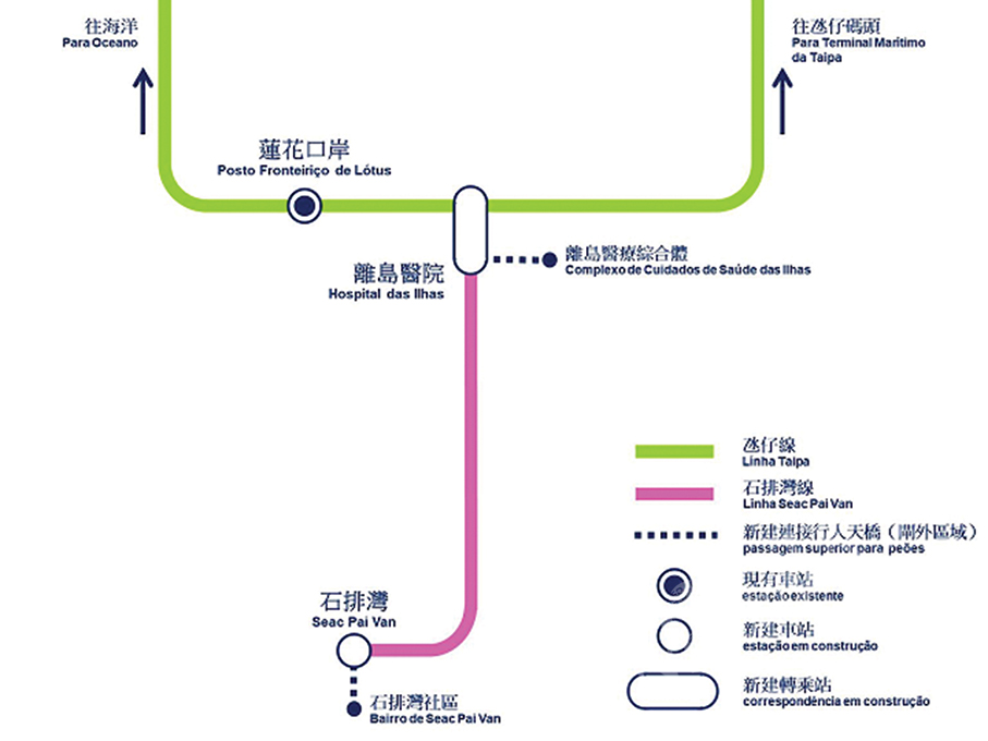 The Seac Pai Van section will only have two stations – one in Estrada do Istmo near the future Cotai hospital complex, and the other one in Estrada de Seac Pai Van outside the Seac Pai Van public housing estate.