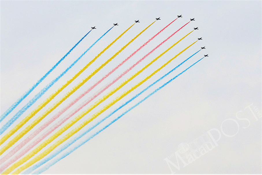 People’s Liberation Army (PLA) Air Force jets fly in formation ahead of yesterday grand gathering celebrating the Communist Party of China (CPC) centenary in Beijing. – Xinhua