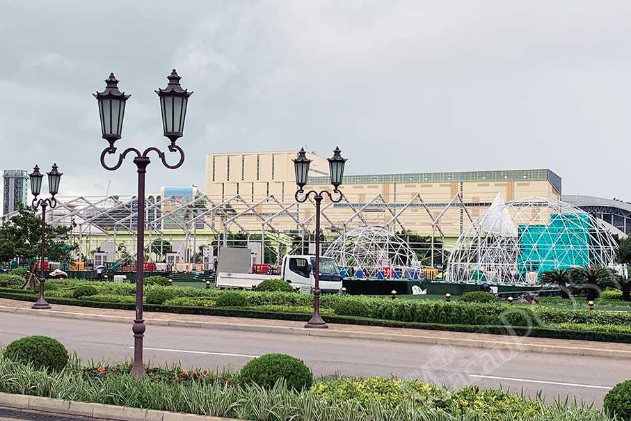 This photo taken on Tuesday outside Wynn Palace shows the poles and pegs of a large tent that had been removed due to the adverse weather. The now-suspended Macau∙Qingdao Beer Cultural Festival had opened there last Friday. Photo: Prisca Tang