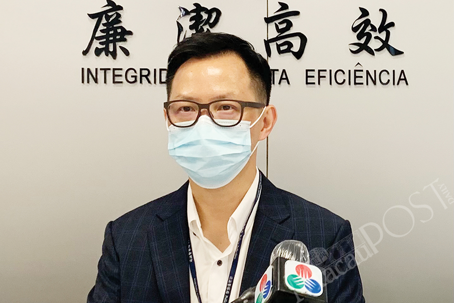 Judiciary Police (PJ) spokesman Ho Chan Nam looks on during a press briefing at the Public Security Police (PSP) press room yesterday.