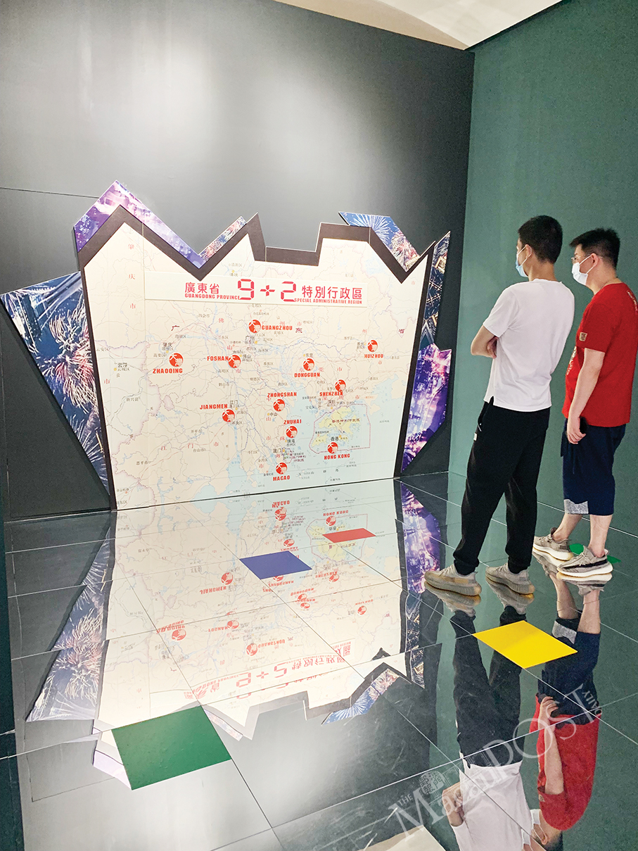The statement underlines that “the latest map of the Greater Bay Area is displayed. Chan marked on the map the locations of the main development projects in the ‘9 cities + 2 Special Administrative Regions’ to give visitors a clearer understanding of the development of Macau, the lifestyle and people’s movement in relation to other cities. Caused by the effect of the mirror platform, the golden lotus display board ‘exploded’ like a firework, as if creating another high-speed time tunnel to travel to the future. In a word, Macau is closely linked to the Greater Bay Area.”