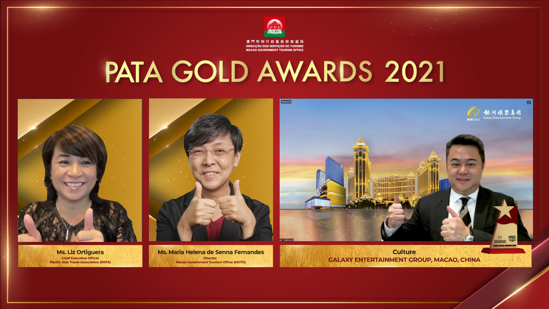 Galaxy Entertainment Group (“GEG”) reaffirmed in a statement today that it endeavours to help foster Macau’s development as a World Centre of Tourism and Leisure by committing to the sustainable development of Macau’s various industries and supporting different cultural, arts, recreation andsports initiatives. Today, according to the statement, GEG received a Gold Award for Culture (Traditional Performance and Visual Arts) in the Sustainability and Social Responsibility Category for its Diversified Approach to Promoting Cultural Tourism from the Pacific Asia Travel Association (PATA).