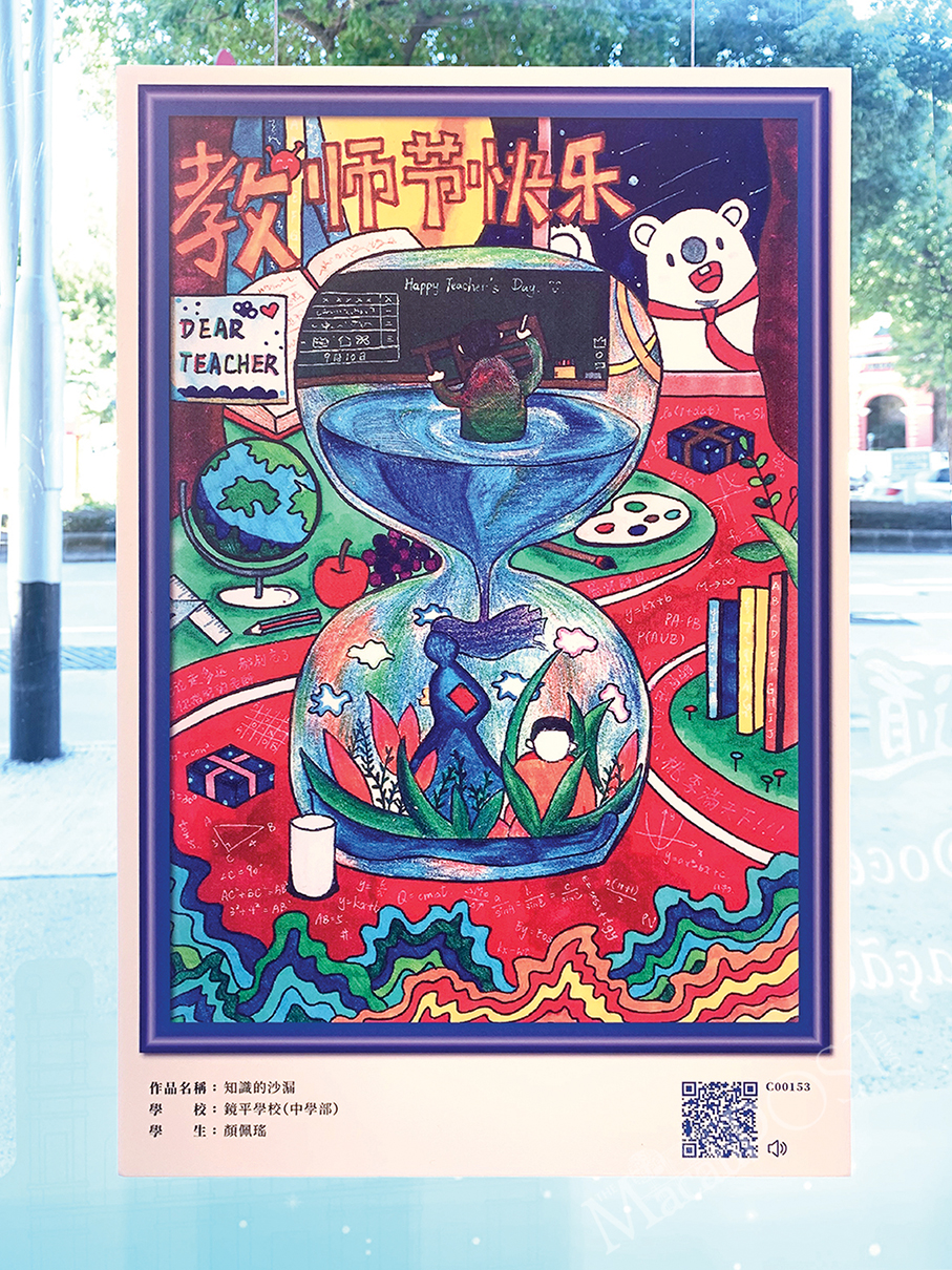An exhibition of artwork by local students entitled “Respect for Teachers and Education” (尊師重道) is on display at the gallery of the Education Resources Centre of the Education and Youth Development Bureau (DSEDJ).