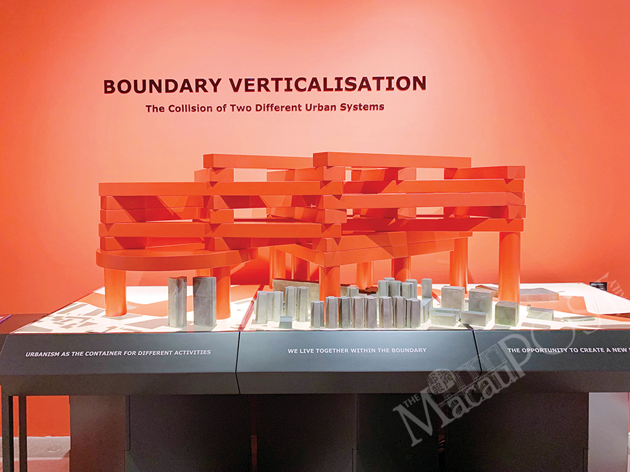 In response to the theme of the Biennale “How will we live together?”, the team showcases four works of different styles: “Connected”(連接通道) by Chan Ka Tat, “Connectivity is from point to point!”(連繫始於點) by Che Chi Hong, “Boundary Verticalisation – the Collision of Two Different Urban Systems” (邊界垂直化– 兩組不同的城市系統碰撞) by Ho Ting Fong, and “Coexistence”(共融) by Lao Man Si, in a bid to give an overview of Macau’s future urban landscape and to reflect on the symbiosis and challenges arising from the in-depth integration of the Guangdong-Hong Kong-Macau Greater Bay Area, according to the statement.
