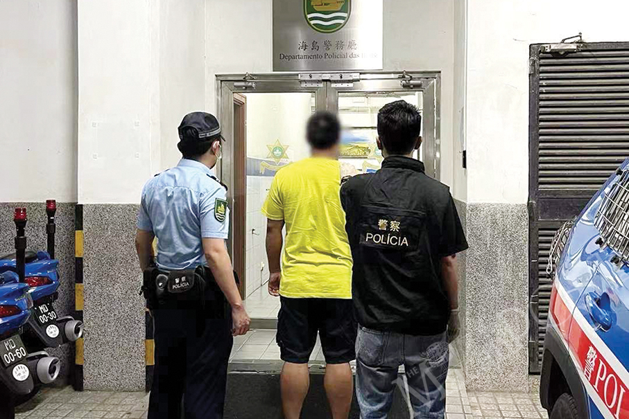This undated handout photo provided by the Public Security Police (PSP) shows the male theft suspect from the mainland being taken to a police station in Taipa.