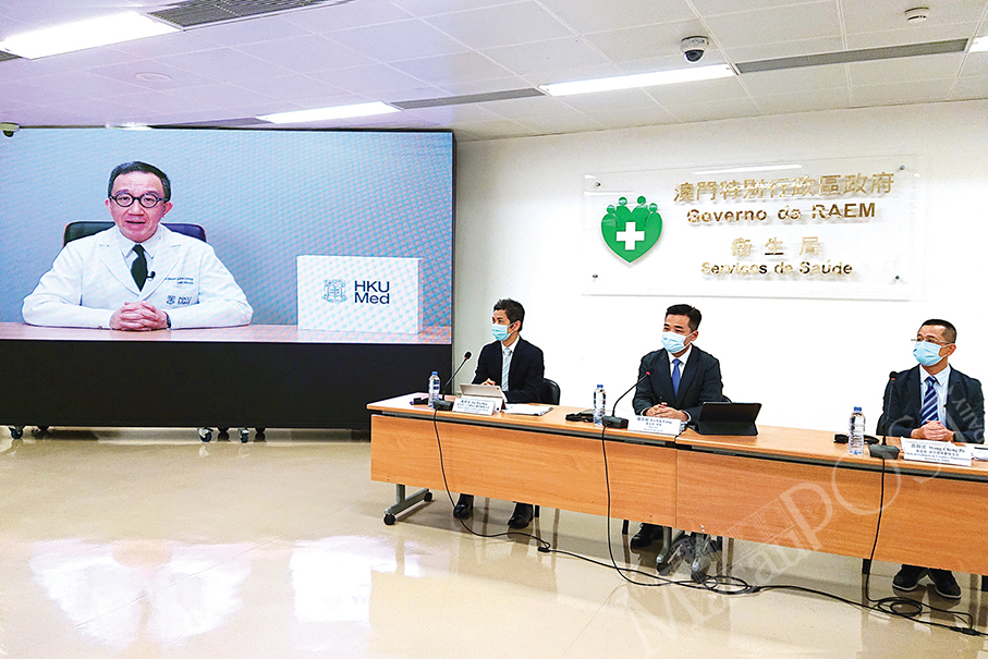 The press conference was hosted by Health Bureau Director Alvis Lo Iek Long, Tai Wa Hou, a clinical director of the public Conde de São Januário Hospital Centre, and Wong Cheng Po, who heads the bureau’s Research and Planning Office.