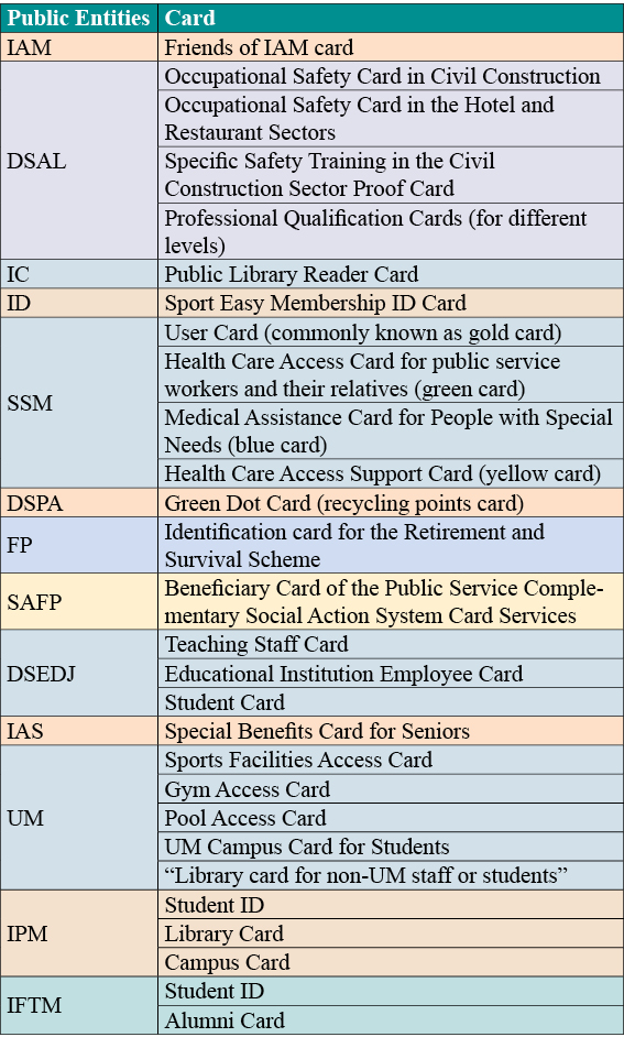 Holds 28 e-cards from 13 public entities