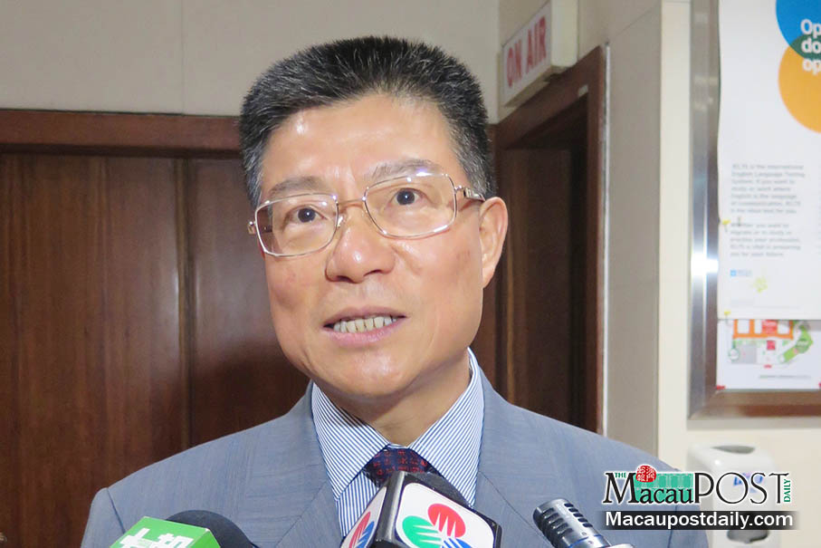 Macau Polytechnic Institute (IPM) President Lei Heong Iok speaks to reporters after the opening ceremony of a training course for local and mainland Portuguese-language teachers on the IPM campus in Zape. Photo: Davis Ip