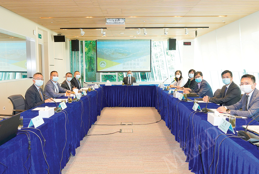 Coordinating Committee for the Management and Development of Maritime Jurisdiction Areas holds a meeting chaired by Secretary for Transport and Public Works Raimundo do Rosário (centre) at the Marine and Water Bureau (DSAMA) headquarters yesterday. Photo: DSAMA