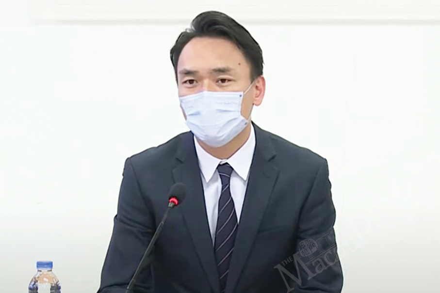 Education and Youth Development Bureau (DSEDJ) Deputy Director Kong Chi Meng addresses yesterday’s press conference about the city’s novel coronavirus (COVID-19) situation. Photo: GCS
