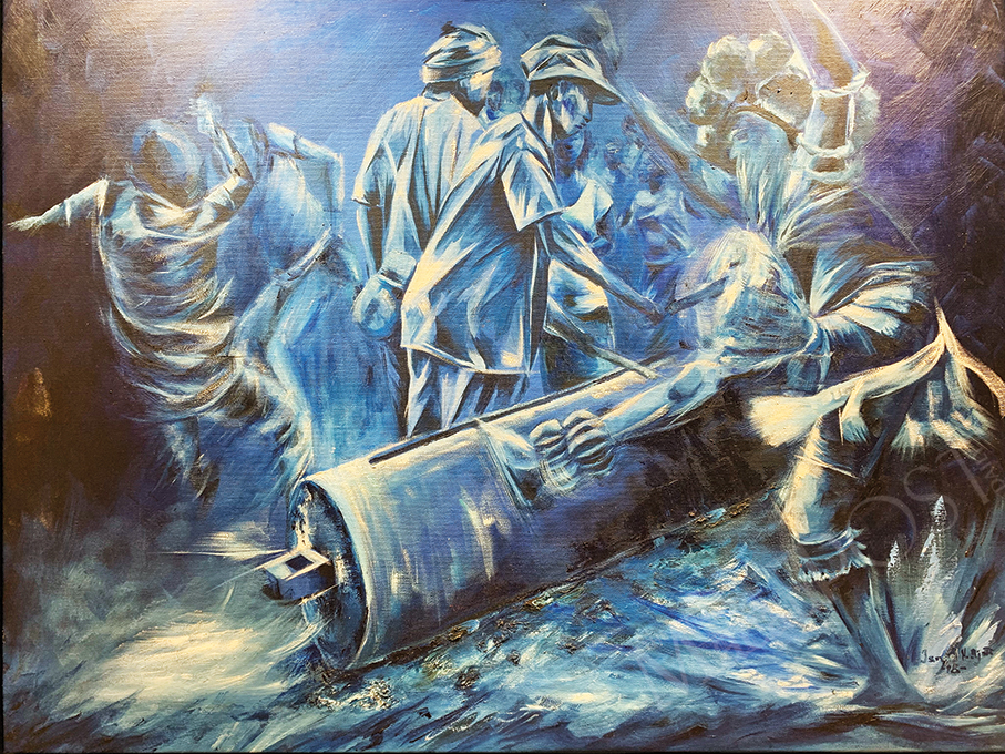 A painting exhibition entitled “Destruction of Humanity” (人性的泯滅) by Bissau-Guinean (幾內亞比紹) artist Ismael Hipólio Djata is being held at the China-Portuguese-speaking Countries Commercial and Trade Service Platform Complex next to Macau Tower as part of a string of activities in conjunction with the 13th Cultural Week of China-Portuguese-Speaking Countries.