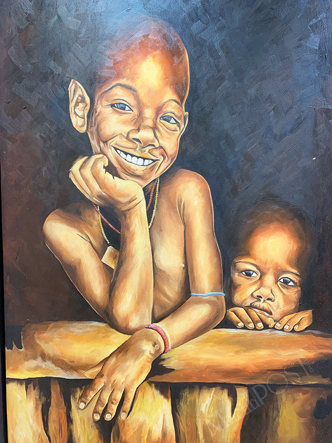 According to the brochure, Djata is one of Guinea-Bissau’s most renowned painters. He is a member of the Plastic Artists of Guinea-Bissau Association (Bissau-Arte). He set up “Irmãos Unidos Arts” (“United Brothers Arts”) with his brother. Djata has won a number of prizes.