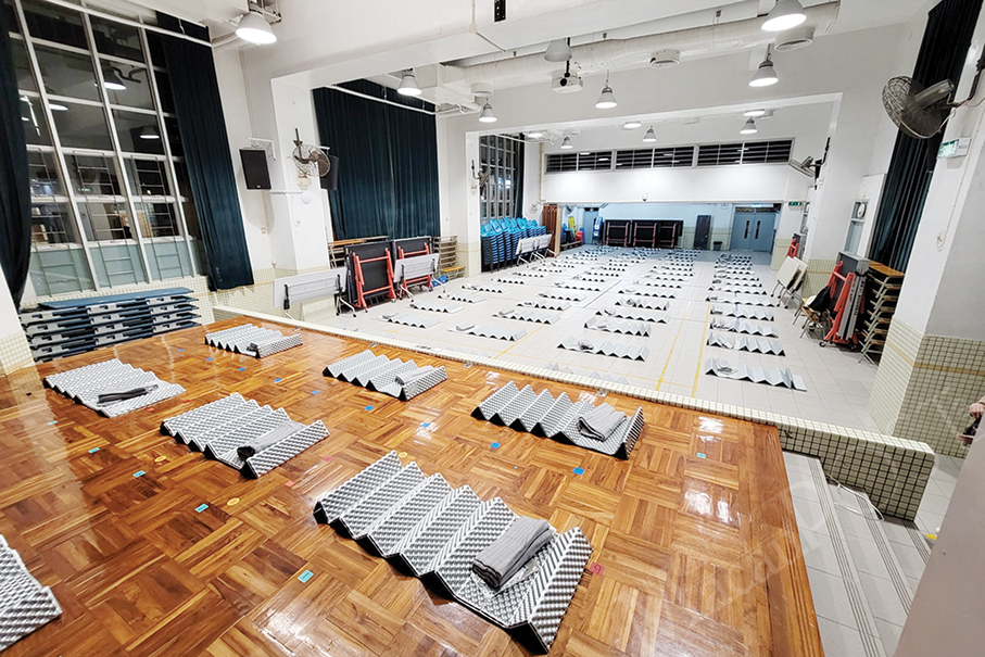 The undated handout photo provided by the Social Welfare Bureau (IAM) this week shows a temporary shelter for students and their parents at an undisclosed location, providing 402 sleeping pads.