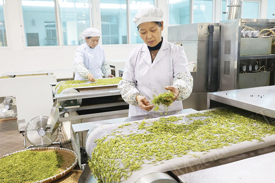Workers process tea leaves at a factory in Zhejiang’s Jingning She Autonomous County in March 2021. – Xinhua