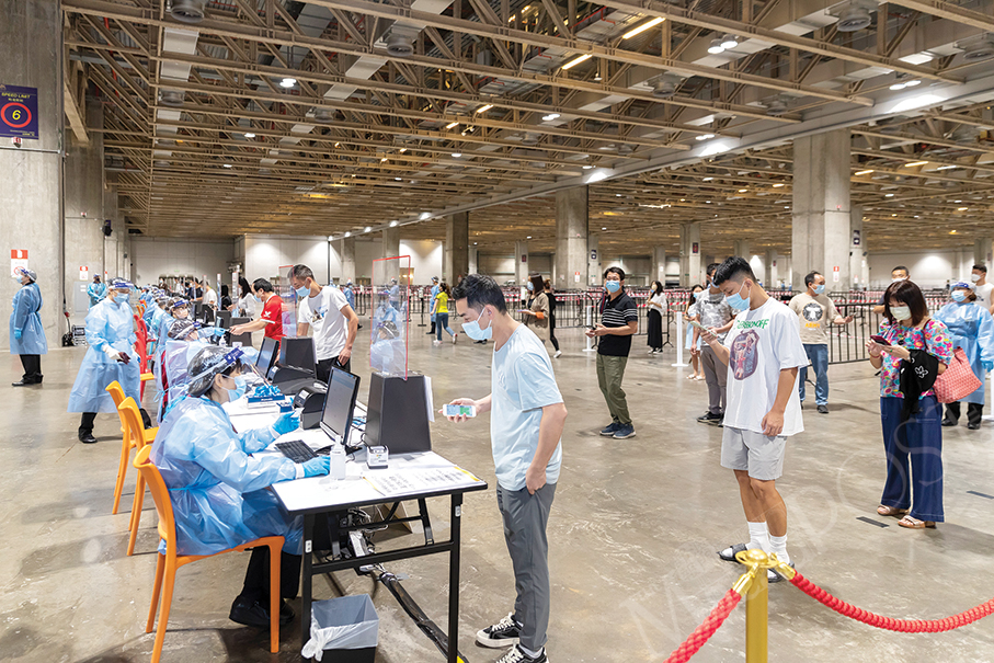 These undated handout photos provided by Sands China this week show the nucleic acid testing station at The Venetian Macao’s Cotai Expo Halls during the third round of the city-wide mandatory nucleic acid test.