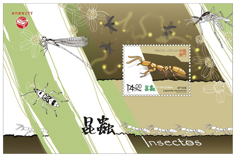 This handout provided by the Macau Post and Telecommunications Bureau (CTT) last week shows the souvenir sheet that features the leptanilla macaensis.