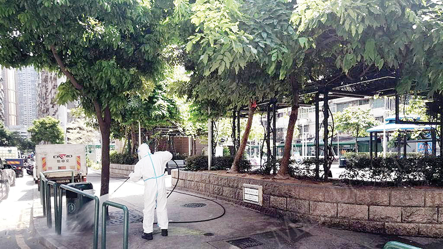 This undated photo provided by the Municipal Affairs Bureau (IAM) yesterday shows one of its leisure areas being disinfected before reopening.