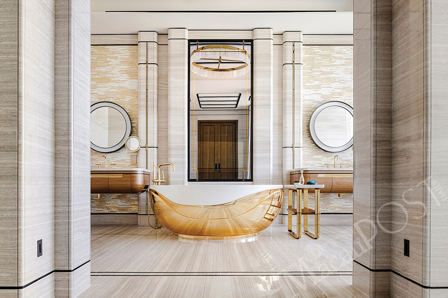 The gold ingot inspired bathtub is another bespoke fixture at the Emerald Villa. Photo: MGM China Holdings
