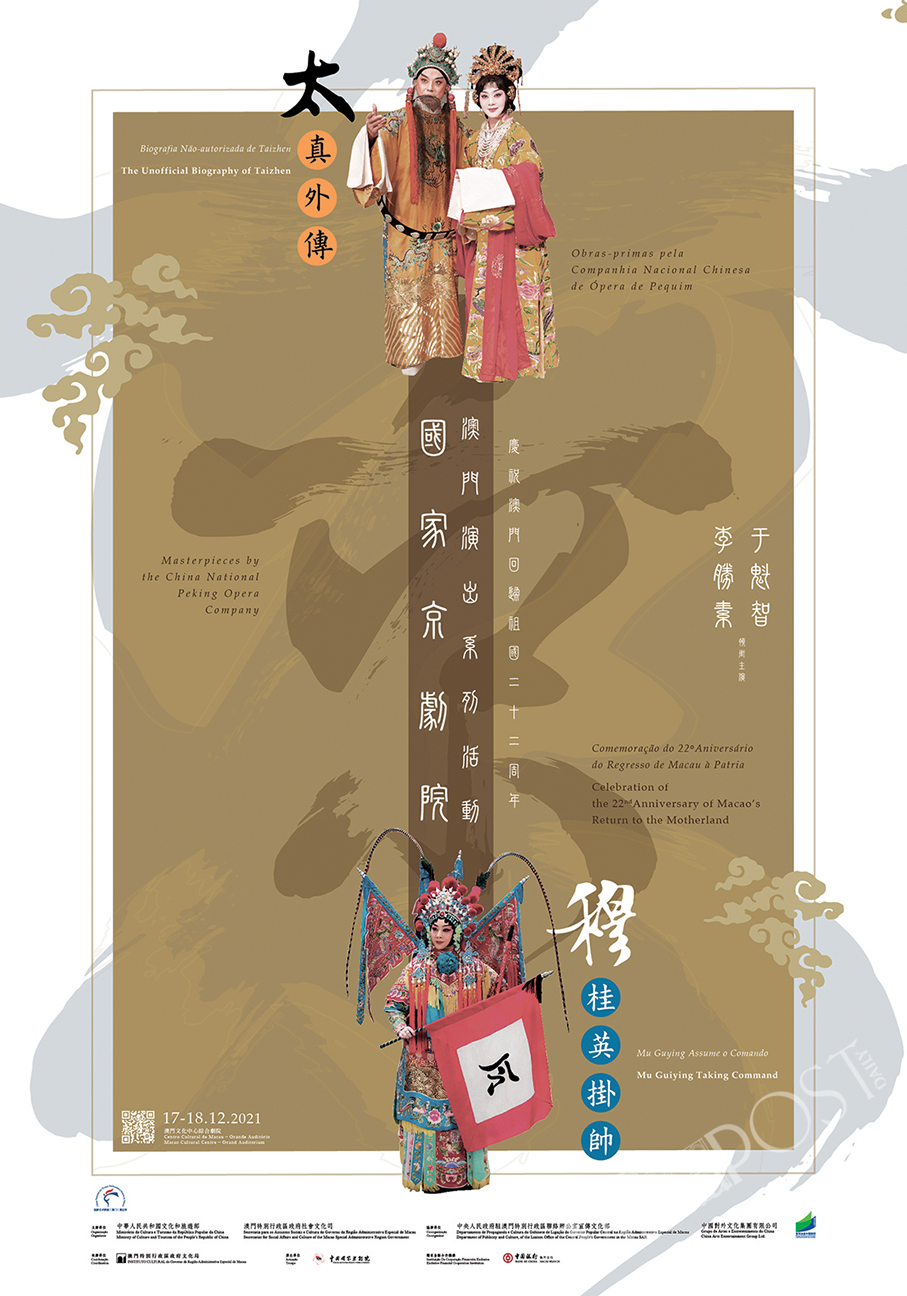 This poster provided by the Cultural Affairs Bureau (IC) promotes the two Peking Opera performances slated to take place at the Macau Cultural Centre (CCM) on December 17 and 18 respectively to celebrate the 22nd anniversary of Macau’s return to the motherland.