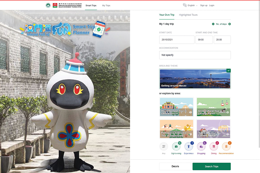 The Macau Government Tourism Office (MGTO) launched the “Macao Full of Fun – Smart Trip Planner” yesterday, which will allow users to plan their own itineraries according to their sightseeing interests, according to a statement from the office.