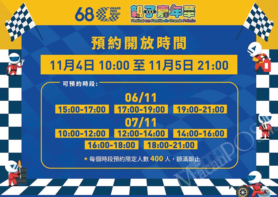 The Sports Bureau (ID) announced in a statement yesterday that the “68th Macau Grand Prix Family Carnival” will be held this weekend in Praça do Tap Seac, for which an online appointment will need to be made for entry.