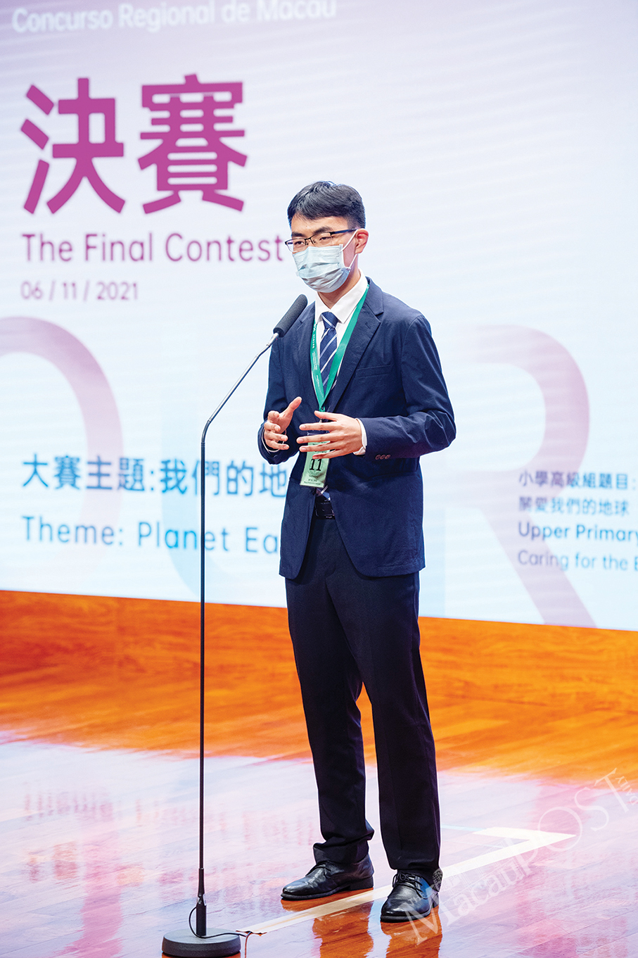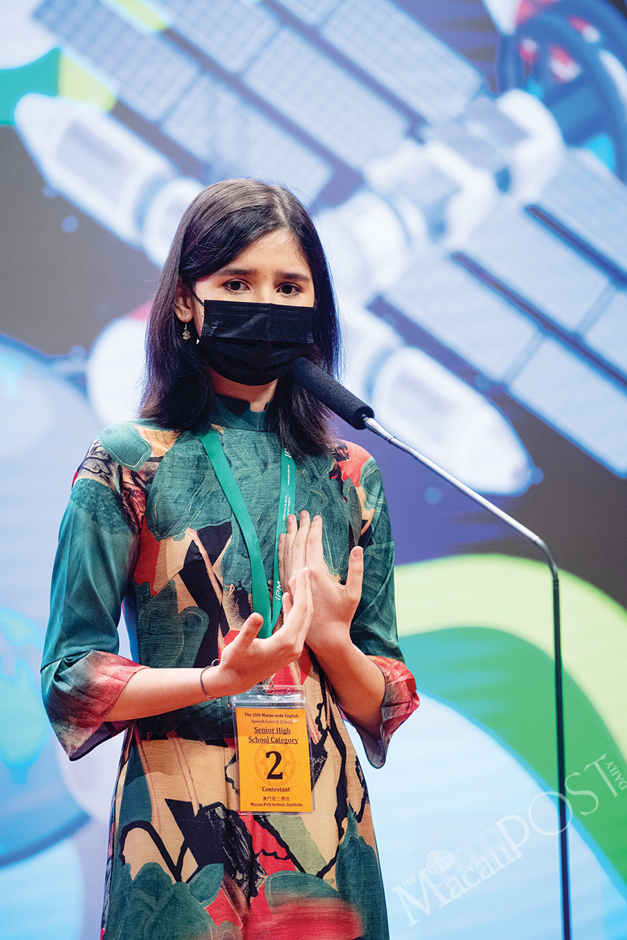 This handout photo provided by the Macau Polytechnic Institute (IPM) yesterday shows “the champion of the Senior High Category” during the 20th Macau-wide English Speech Contest that took place earlier this month.