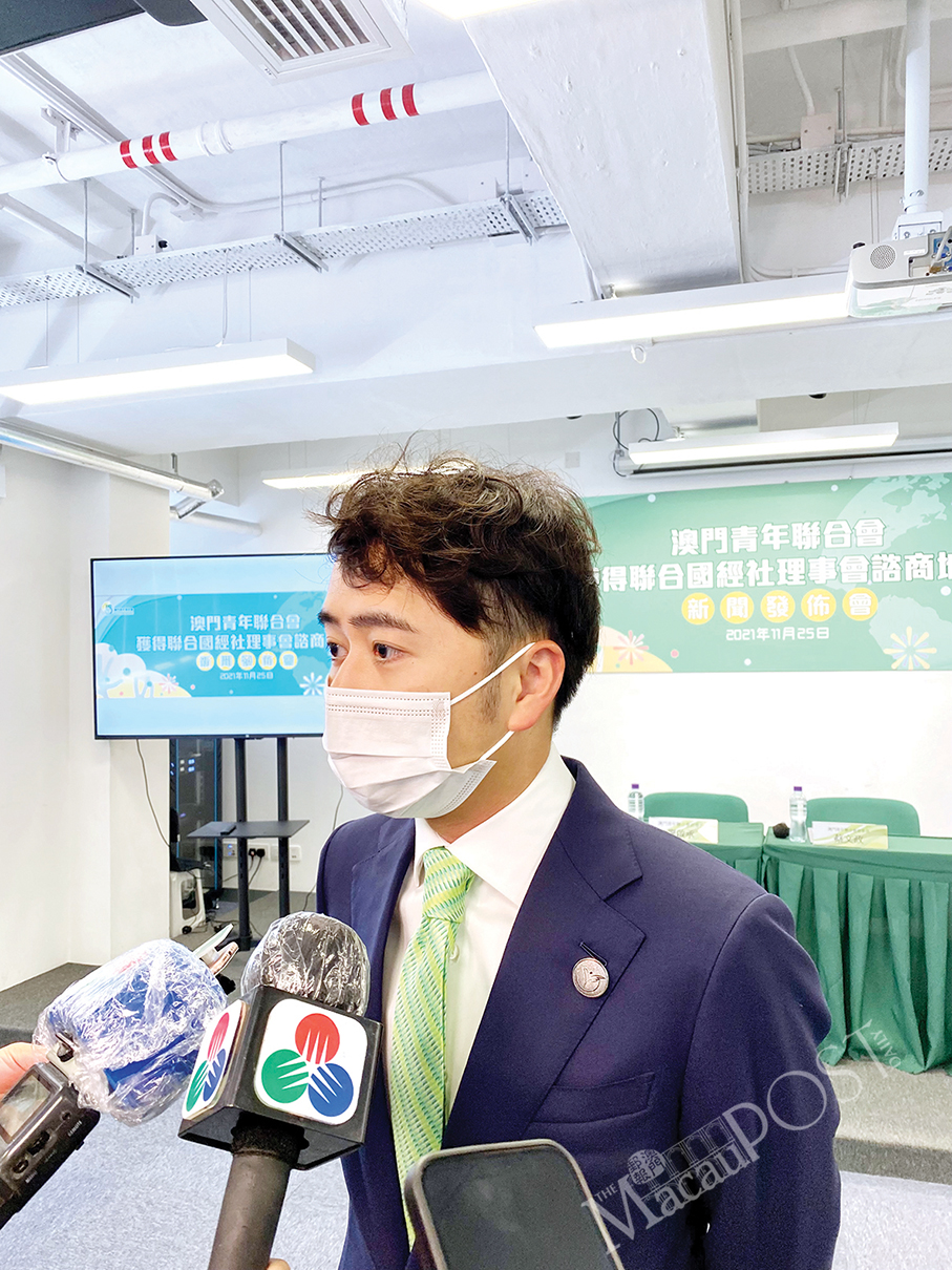 The Macau Youth Federation (澳門青年聯合會 – MYF) acquired consultative status at the United Nations’ Economic and Social Council (ECOSOC) on July 22, the non-governmental organisation announced in a press conference yesterday at the Macau Daily News Building.