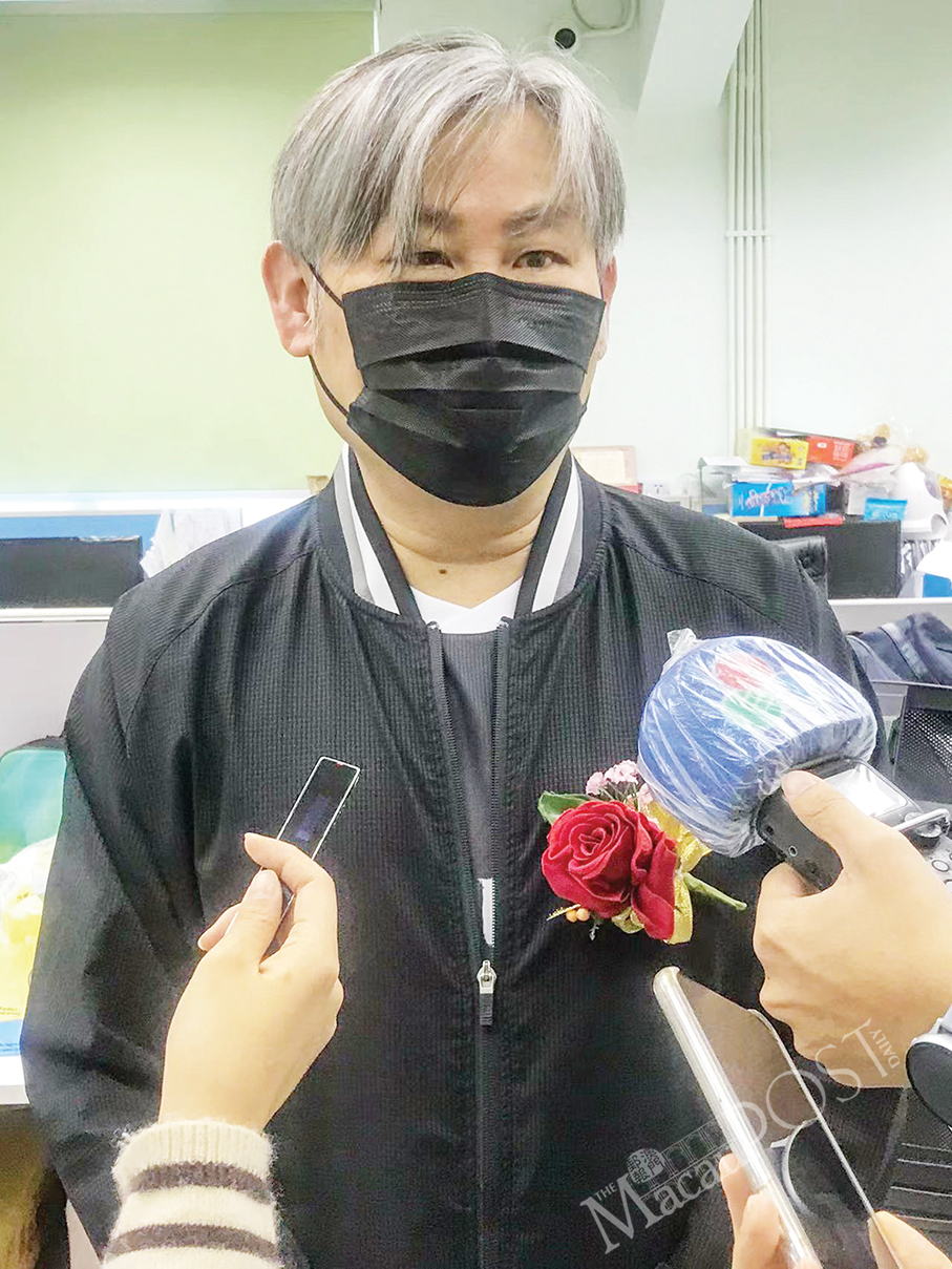 Macau Special Olympics (MSO) Executive Director Hetzer Siu Yu Hong speaks with reporters after the “Event Series of Youth Growth 2021 Wynn Care Children Development Awareness Day”, held yesterday afternoon at the MSO office in Areia Preta. Photo: Rui Pastorin