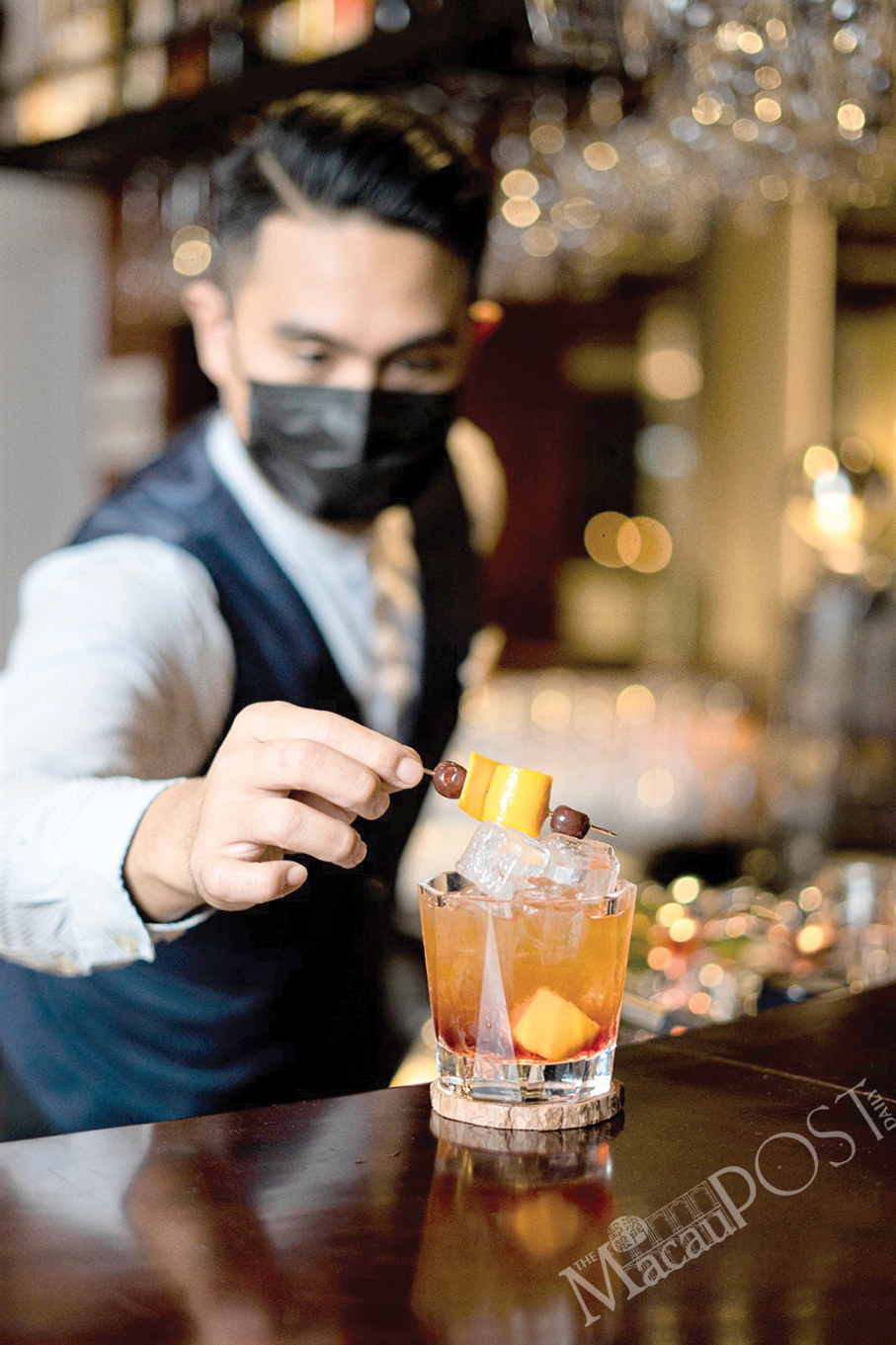 This undated handout photo by Artyzan Grand Lapa Macau shows a bartender preparing a cocktail in the new curated cocktail programme entitled “Vasco Old Fashioned”, at the five-star hotel’s first-floor Vasco Bar & Lounge.