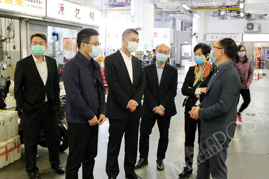 This file photo shows the then vice-director of the Central People’s Government Office Liaison Office in Macau, Yao Jian (third from left), visiting the Macau Wholesale Market in Ilha Verde, which is run by Guangdong Nam Yue Group Corporation Limited, in February this year. Photo: Liaison Office