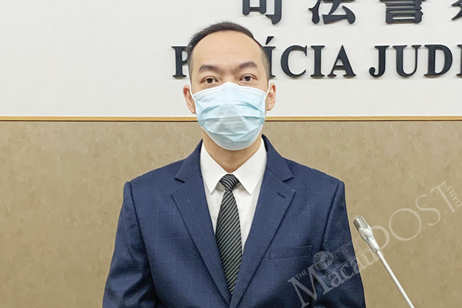 Judiciary Police (PJ) spokesman Lou Chan Fai looks on during yesterday’s press conference at the PJ headquarters. Photo: Camy Tam