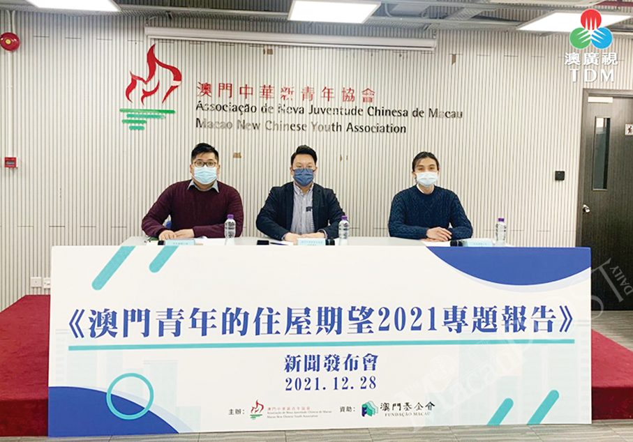 Members of the Macau New Chinese Youth Association present the findings of their survey about “Macau youths’ housing expectations in 2021” to the media yesterday. Photo courtesy of TDM