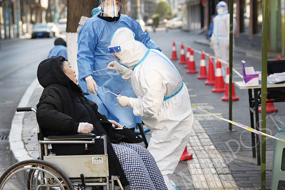 A senior citizen undergoes a nucleic acid test (NAT) at a testing site in Xi’an yesterday. Authorities in Xi’an have upgraded epidemic control and prevention measures since Monday, ordering all residents to stay indoors and refrain from gatherings except for nucleic acid testing. – Xinhua