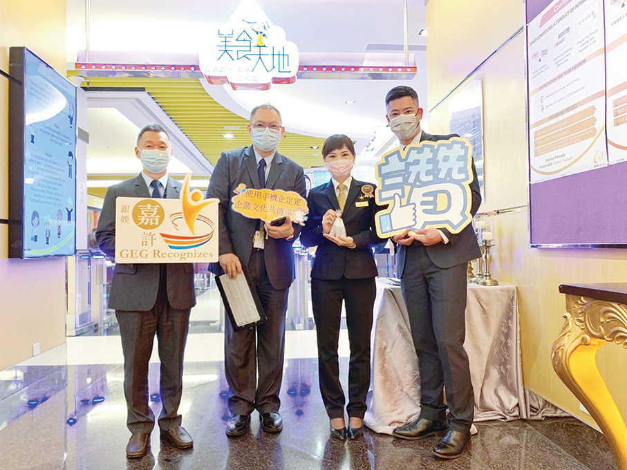 To further cultivate a WHS-focused culture, GEG has broadcasted over 80 WHS reminders via its internal mobile app GEG Buzz since 2019. GEG has also produced a series of videos on the importance of a healthy and safe working environment, which are shown at staff canteens and in back-of-house areas. This initiative has gained wide support from management and lots of attention from team members.