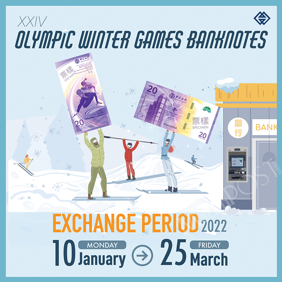 The Macau Monetary Authority (AMCM) said in a statement yesterday that residents can exchange common banknotes for XXIV Olympic Winter Games banknotes starting next Monday.