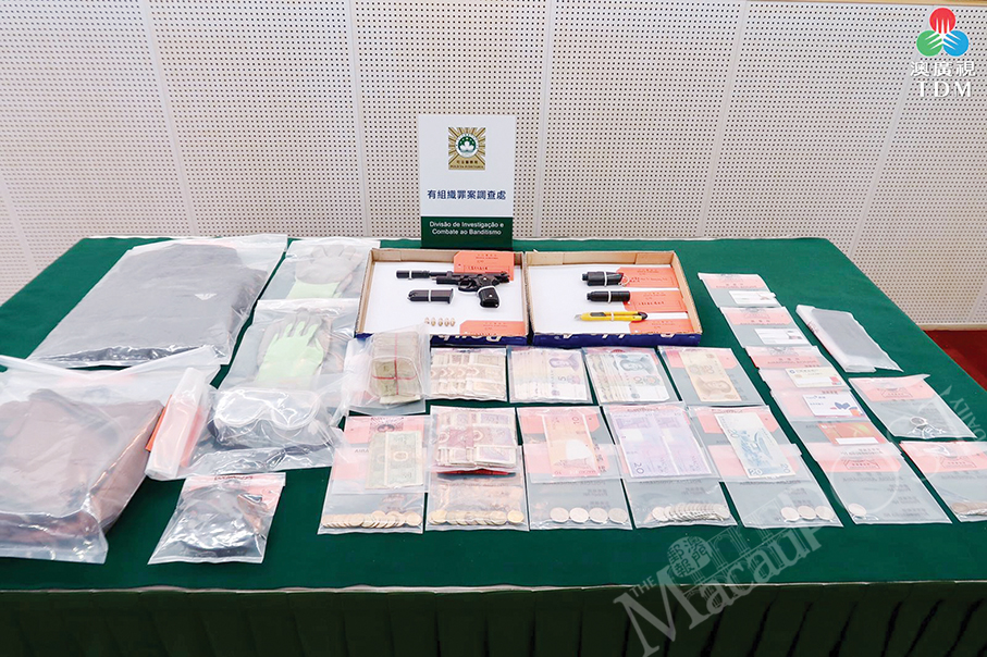 Choi said that the Public Security Police discovered a man looking suspicious in Praça de Ferreira do Amaral on Monday afternoon. The officers intercepted Zhao and seized a black imitation pistol, five fake bullets and some cash from him. Zhao was carrying a bag containing a black window breaker and two mainland ID cards belonging to others, and the officers suspect that one them is fake.