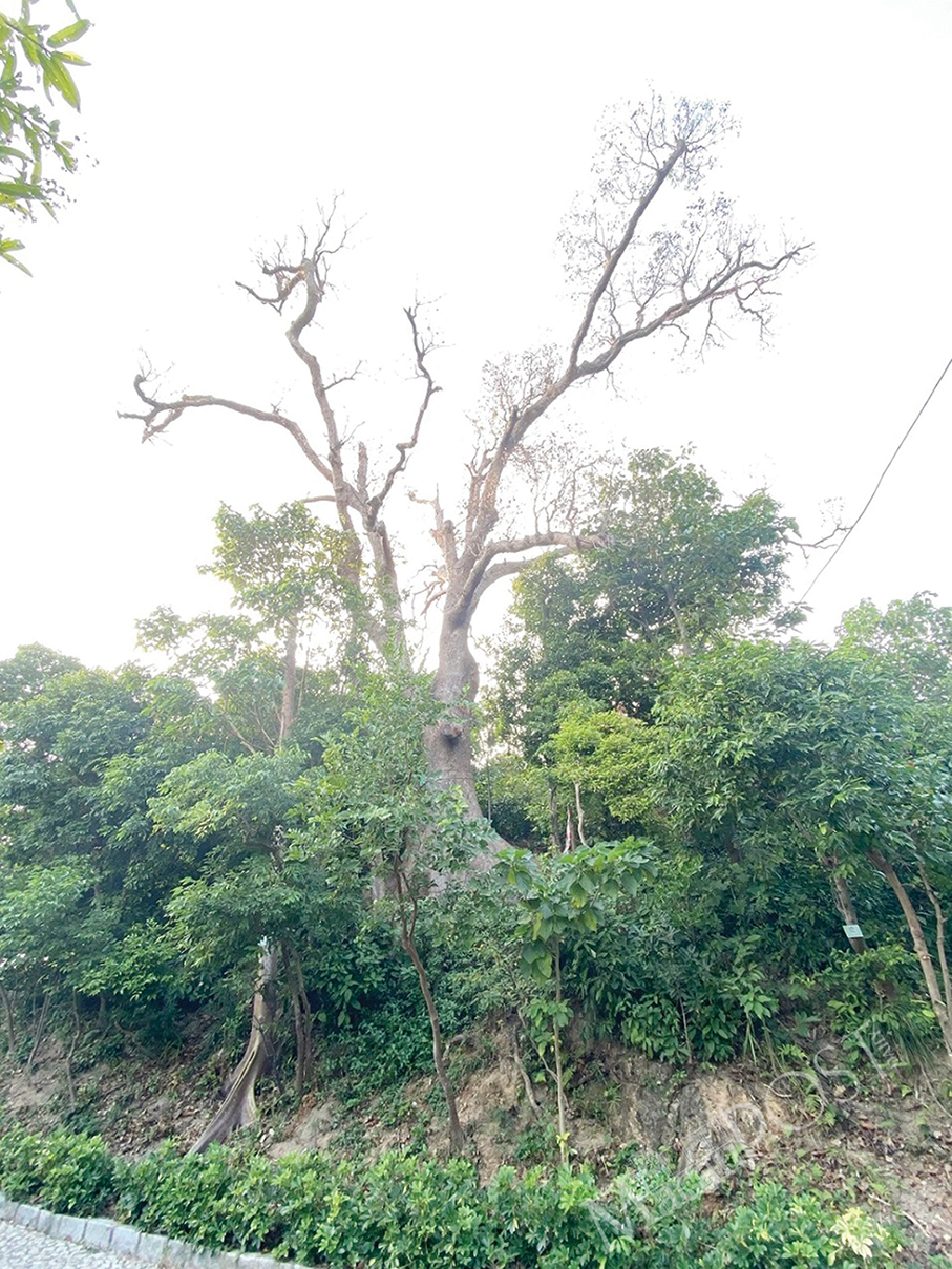 This undated handout photo provided by the Municipal Affairs Bureau (IAM) yesterday shows the ailing camphor tree in Guia Hill Municipal Park with barely any leaves left.