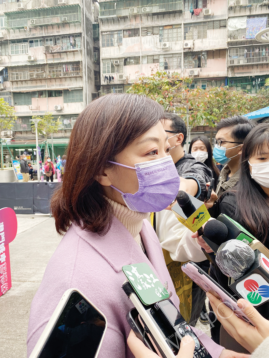 Cultural Affairs Bureau (IC) President Mok Ian Ian talks to reporters on the sidelines of yesterday’s opening ceremony for the 21st Macao City Fringe Festival in Rua Oito do Bairro Iao Hon.